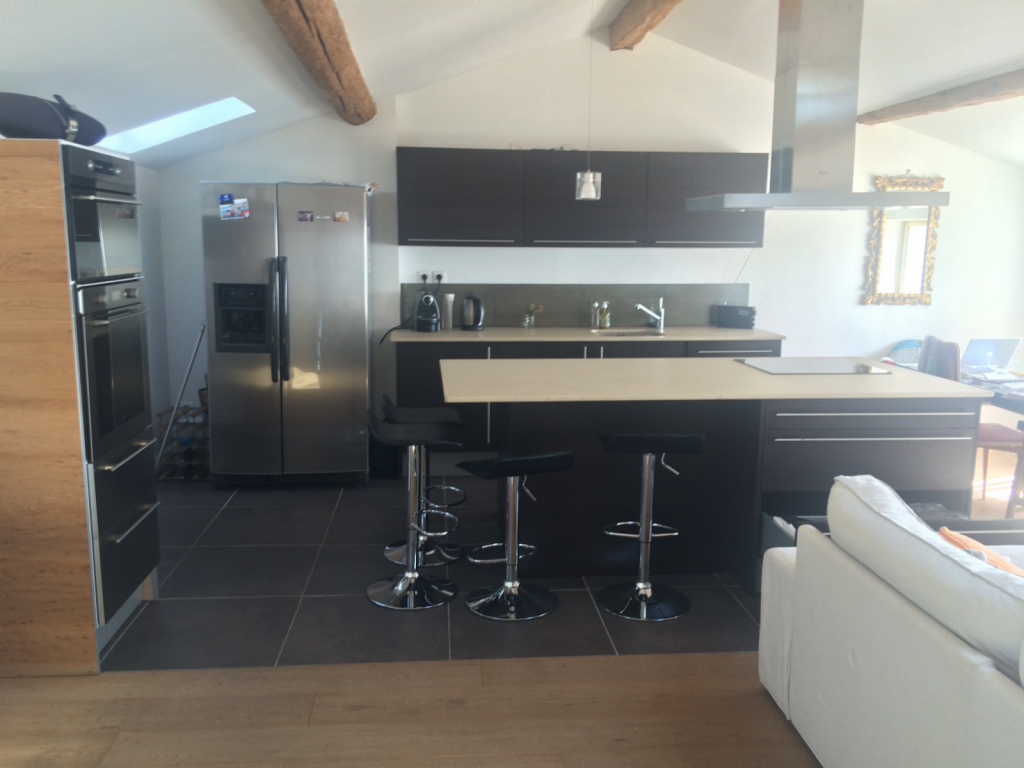 au 2nd : grand espace à vivre avec cuisine équipée ouverte, avec vue panoramique sur la Méditerranée et le port