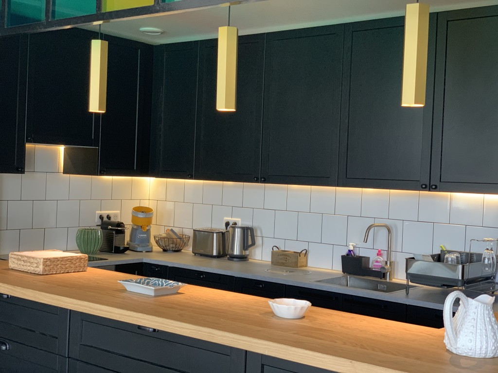 extensive living area with a fully equipped kitchen, TV