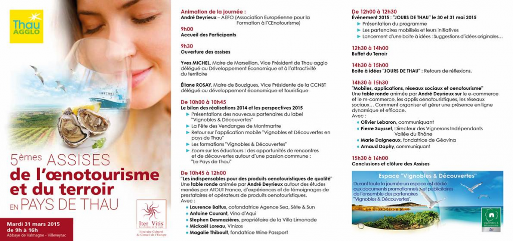 mars 28th by Laurence 0 0 Sea, Sète & Sun participera aux 5è Assises de l’Oenotourisme et du Terroir en Pays de Thau ce Mardi 31 Mars à l’Abbaye de Valmagne. Share on FacebookShare on TwitterShare on Google+